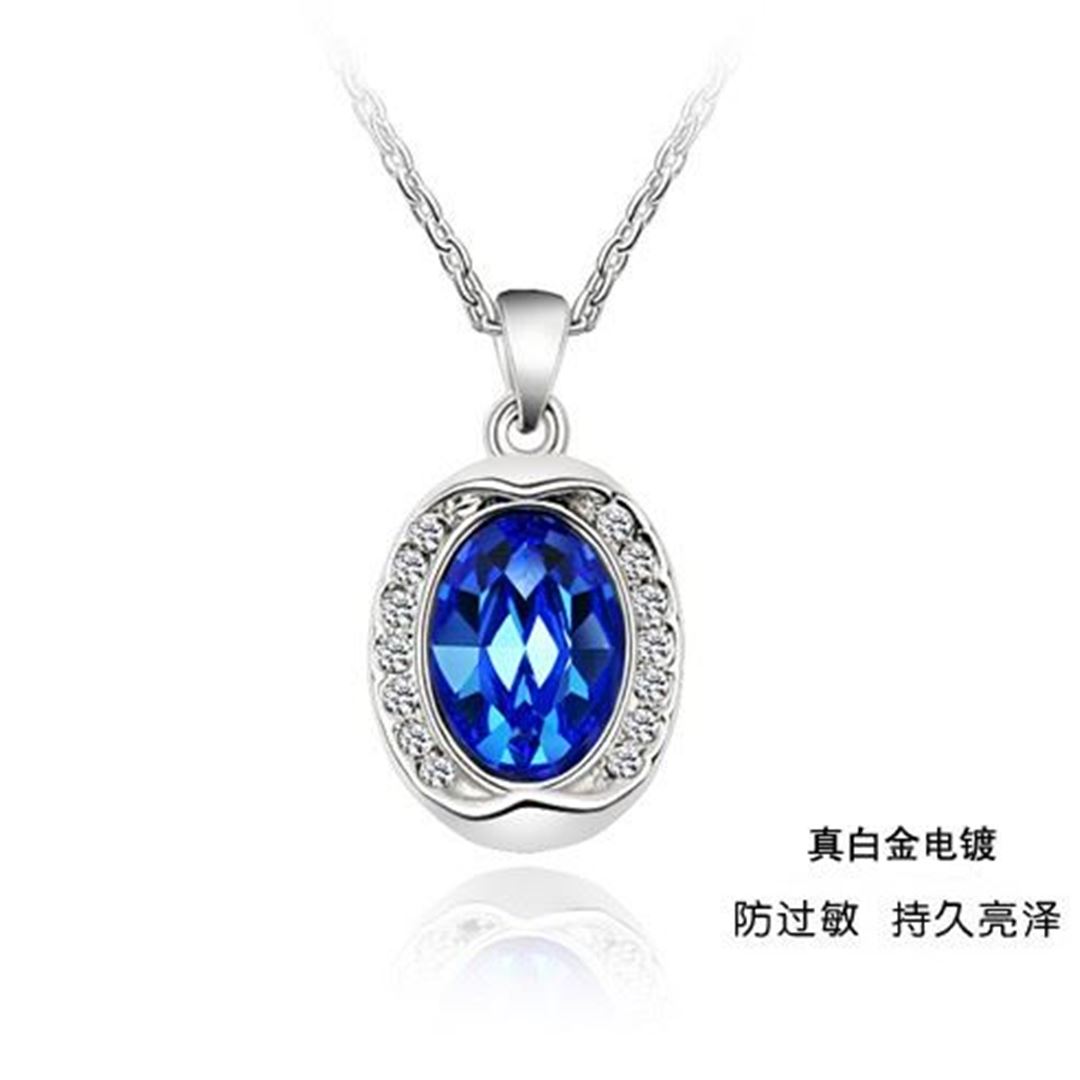 Austrian Crystal Pendant Necklace - Blue Austrian Crystal
